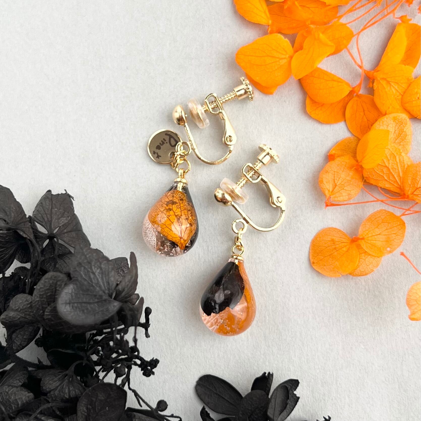 透き通るオレンジはまるでカボチャランタンの灯りのように温かく、深いブラックは夜空に舞う魔女の影を思わせます。