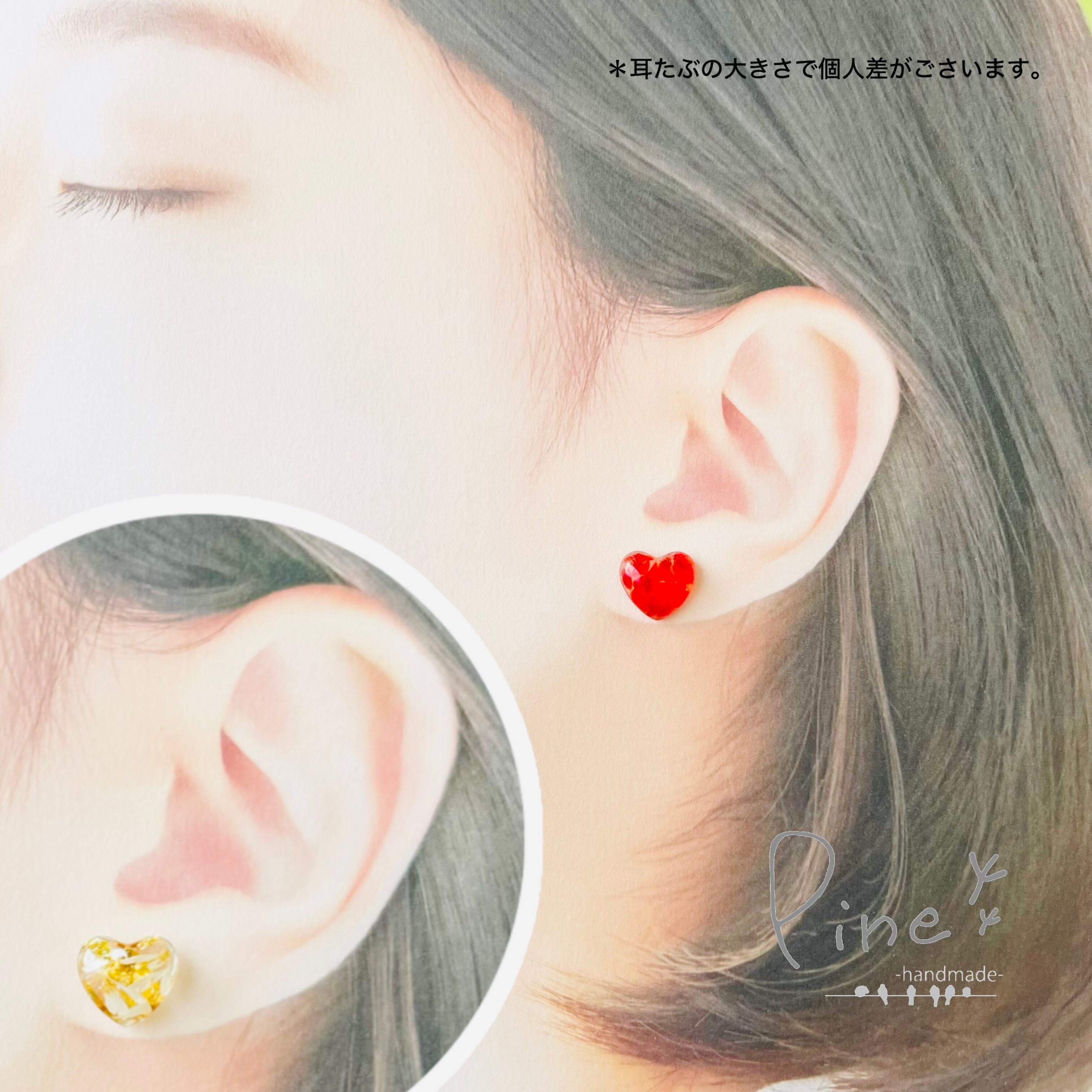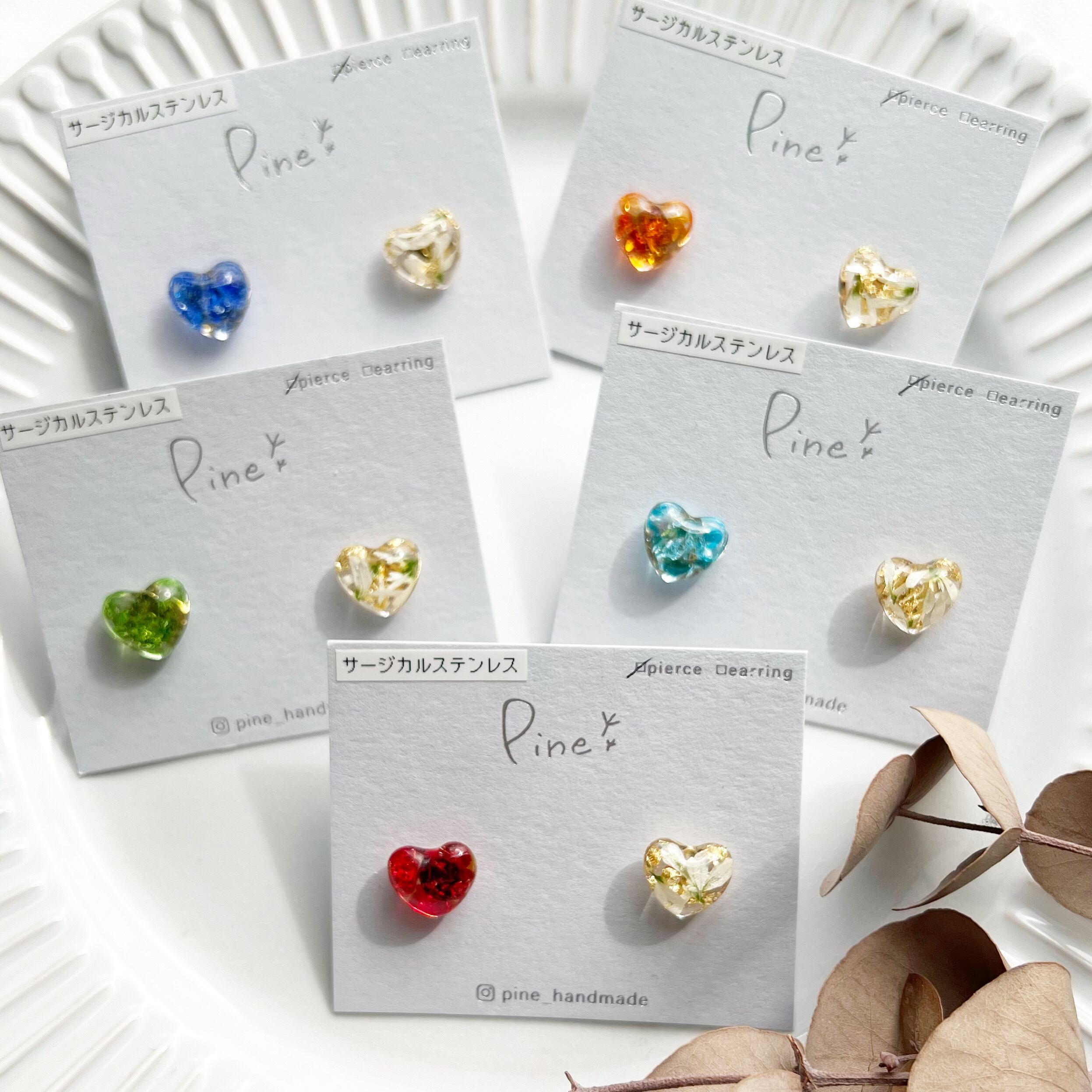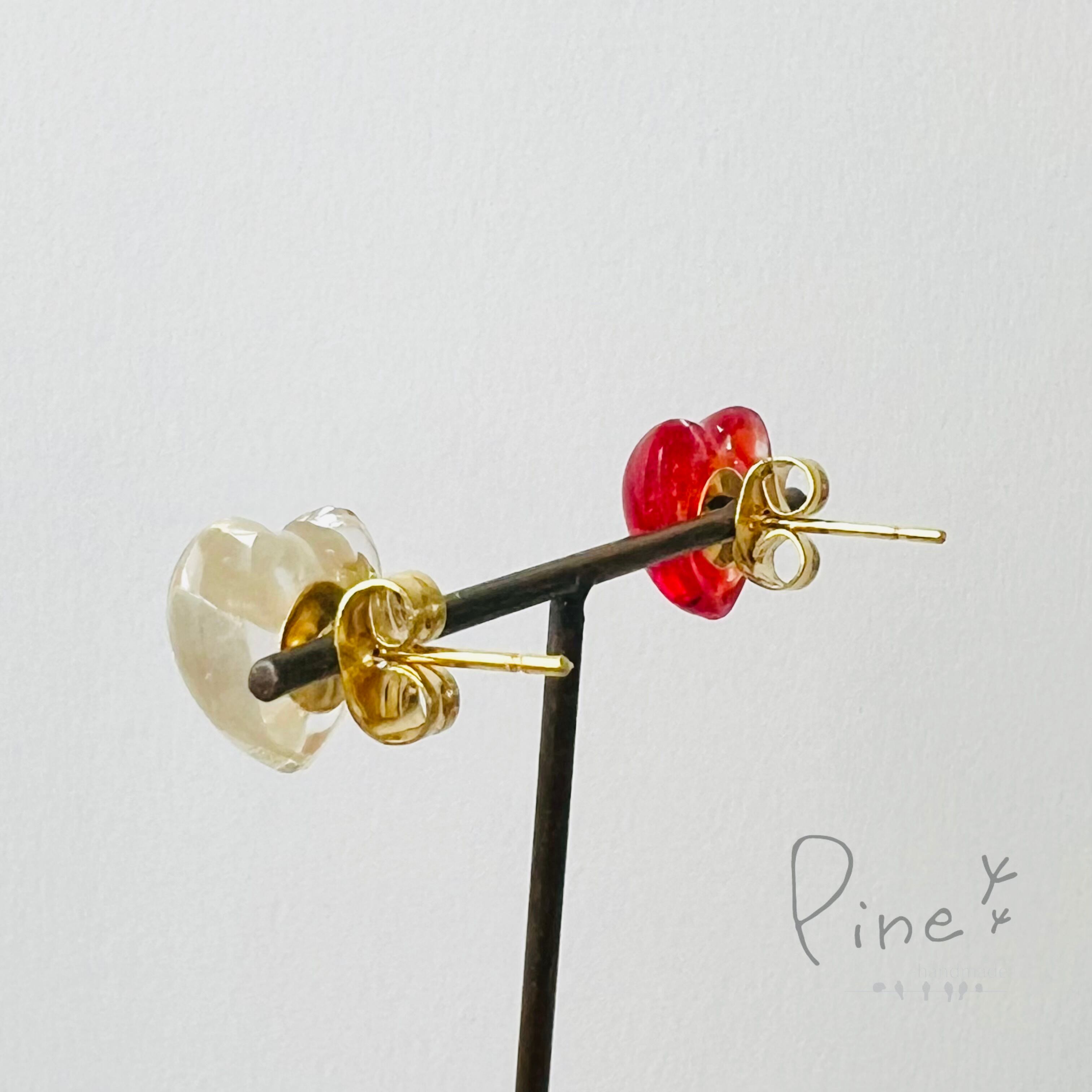ハート/ピアス/赤/アシンメトリー/琉球ガラス/押し花/沖縄アクセサリー
