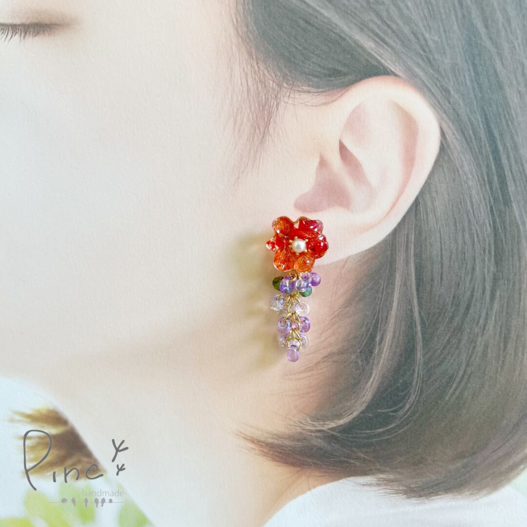 藤の花を表現するため使用しているビーズは高品質の国産ビーズを使用しており透明感のある輝きがあるのが特徴です。
