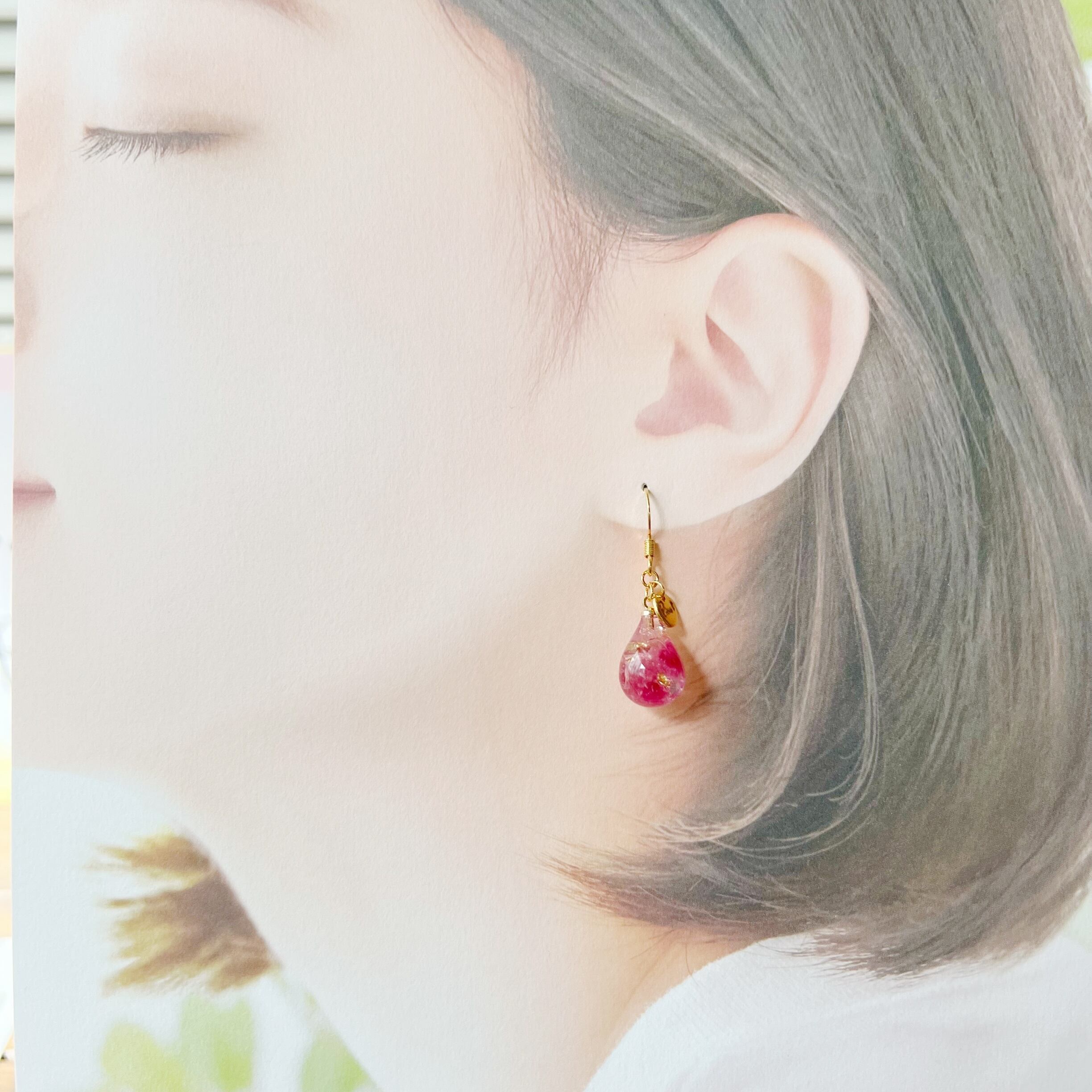 雫〜Shizuku〜/紫/イヤリング/琉球ガラス/押し花/沖縄アクセサリー